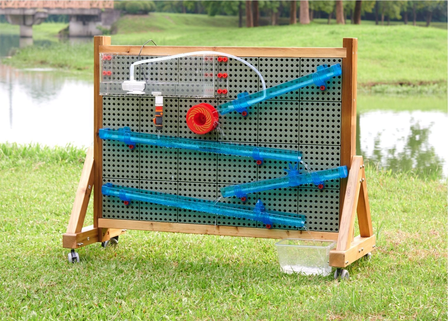 Der Tank kann eigenständig mit integriertem Ablauf für ein einfaches Entleeren verwendet oder mit einer Wasserpumpe (nicht im Lieferumfang) verbunden werden, um noch dynamischere Wasserexperimente zu ermöglichen. Die vollständige Kompatibilität mit den MASTERKIDZ STEM Outdoor-Tafeln erleichtert die Installation und das Gestalten vielfältiger Wasserbahnen.