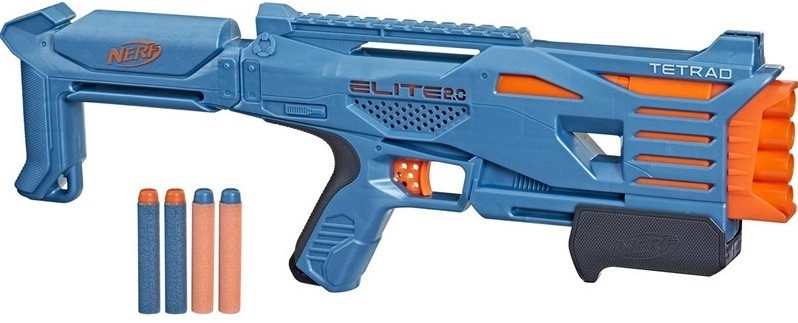 Die Nerf Elite 2.0 Tetrad QS-4 ist ein kompakter Blaster für Schaumstoff-Darts, ideal für schnelle Gefechte im Garten oder Wohnzimmer. Dank vier Laufkammern ermöglicht sie schnelle Schüsse nacheinander ohne kompliziertes Nachladen, sodass Sie länger im Spiel bleiben.
