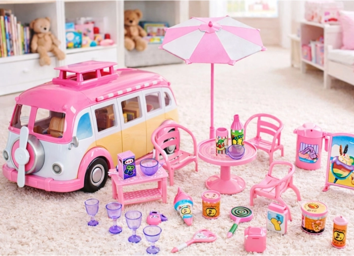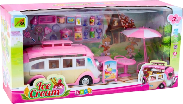 Der Camper – Eisdiele ist ein durchdachtes Spielset, das Fahrzeug, Café und Süßigkeitenstand verbindet. Nach dem Öffnen der Türen und dem Aufklappen des Dachs entsteht ein leicht zugänglicher Innenraum mit Theke, Regalen sowie Platz zur Zubereitung und Ausgabe von Köstlichkeiten. Dank kräftiger Farben und realistischer Details erschaffen Kinder spielend eigene Geschichten.