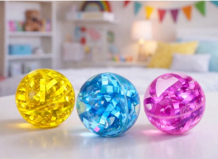 Entdecken Sie die Freude an Bewegung mit dem leuchtenden Ball voller funkelnder Konfetti. Bei jedem Aufprall erstrahlt der Ball in farbigen Lichteffekten, die Kinder wie Erwachsene begeistern – besonders in der Dämmerung. Der transparente Körper betont die flirrenden Konfetti und verleiht dem Spiel Dynamik und visuelle Attraktivität.