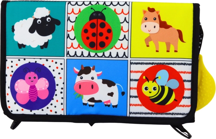 Die Matte bietet verschiedene sensorische Reize – knisternde Flächen, hängende Beißringe und vielfältige Texturen für die Feinmotorik. Sie ist weich, leicht und lässt sich einfach zusammenfalten, sodass du sie in den Kinderwagen, ins Bettchen oder auf Reisen mitnehmen kannst. Ideal für Tummy Time, Spielen in Bauchlage und die ersten Versuche, das Köpfchen zu heben.