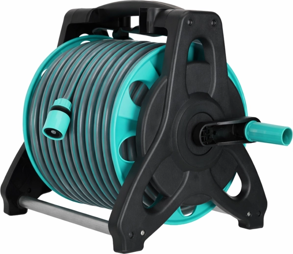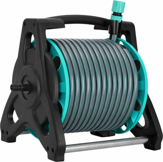 Alles für den sofortigen Einsatz ist enthalten: 2 m Zulaufschlauch, Schnellkupplungen, Adapter sowie Wasserhahnanschluss. Der Aufwickler hält den Schlauch frei von Verdrehen und Abknicken – für schnelleres, saubereres und effizienteres Bewässern.