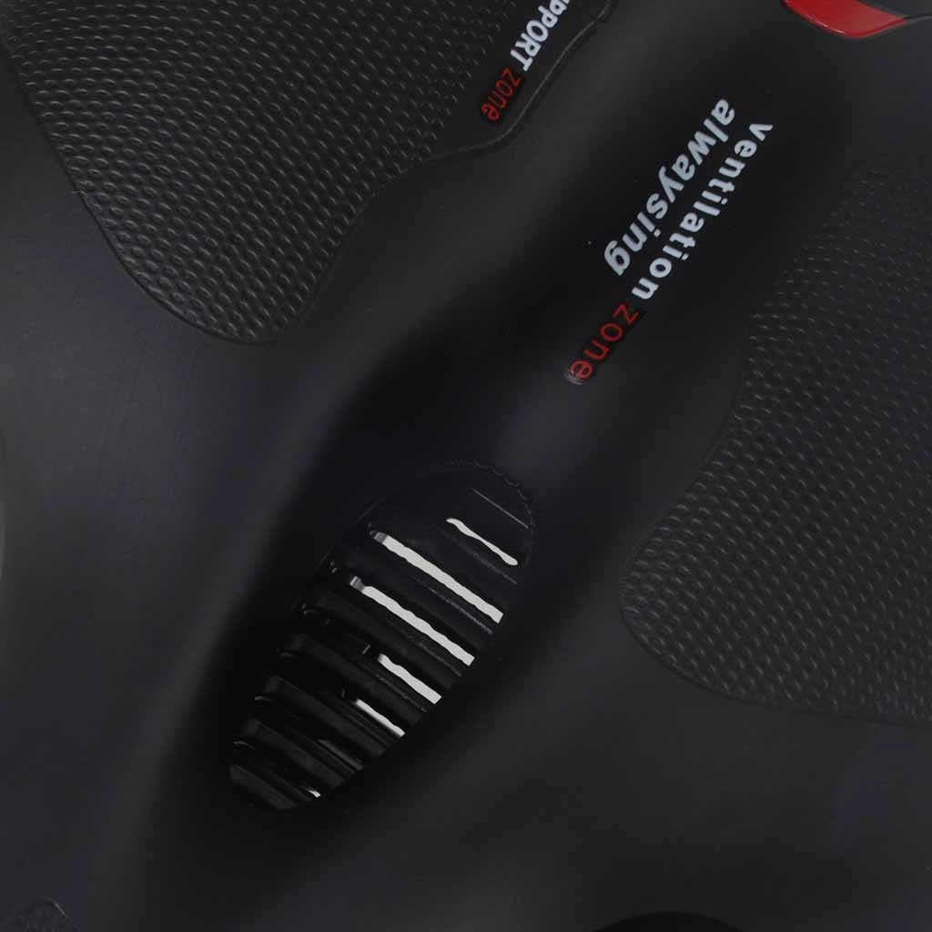 Der zentrale Belüftungskanal entlastet empfindliche Bereiche und verbessert die Luftzirkulation für höheren Komfort auf längeren Fahrten.
