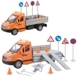 Im Set enthalten sind Pylonen, Verkehrsschilder, Barrieren und Werkzeug, mit denen Kinder Absperrungen errichten, Straßenarbeiten markieren und Sicherheitsregeln lernen können.