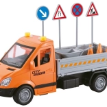 Zum Lieferumfang gehören Verkehrspylonen, Schilder, Barrieren und kleines Werkzeug, mit denen Kinder im Handumdrehen eine eigene Baustelle oder Straßensperre gestalten. Die robuste Kunststoffausführung ist sicher und für den täglichen Spielgebrauch geeignet.