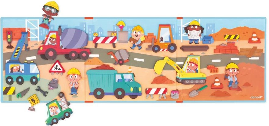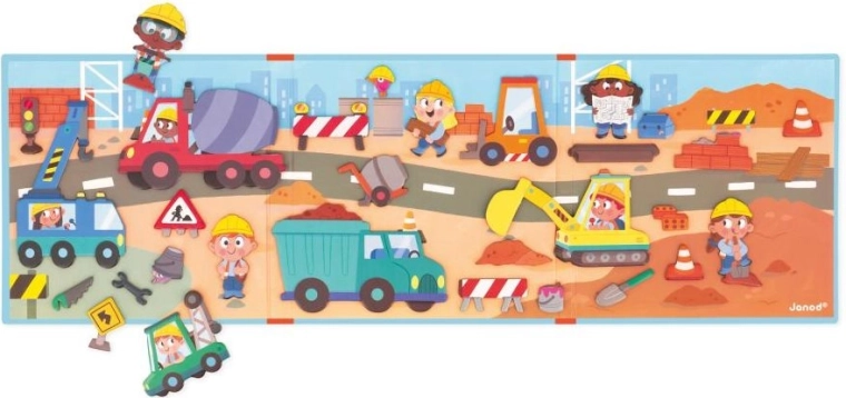 Das magnetische Buch von Janod zum Thema Baustelle ist die perfekte Wahl für Spiel und Lernen. Kinder können verschiedene Szenen zusammensetzen, Geschichten erfinden und gleichzeitig Feinmotorik sowie logisches Denken trainieren. Dank des stabilen Hintergrunds und der hochwertigen Magnete bleiben die Teile an Ort und Stelle – egal, ob zu Hause oder auf Reisen.