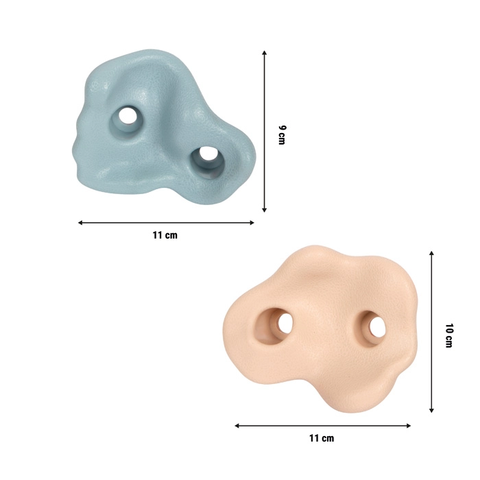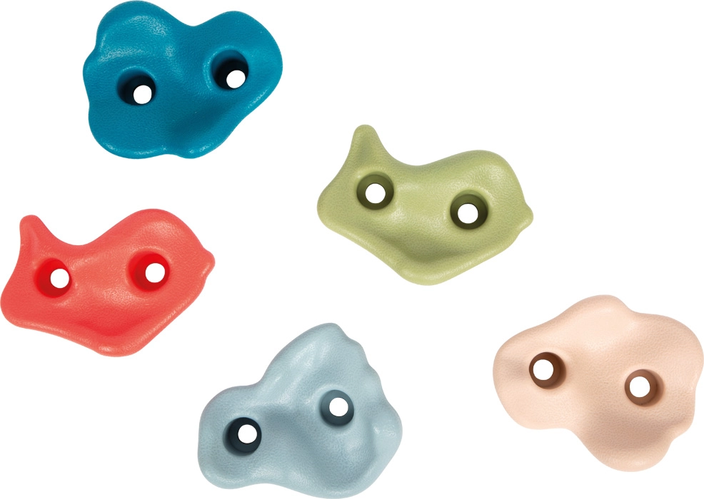 Schaffen Sie für Kinder eine sichere und motivierende Kletterstrecke. Robuste Kunststoffgriffe in modernen Farben verfügen über eine angenehm körnige Oberfläche für einen sicheren Halt auch für kleine Hände. Die 2-Punkt-Befestigung sorgt für Stabilität ohne Verdrehen und ermöglicht eine feste Montage an Holzplatten, Spieltürmen und Gartenwänden.