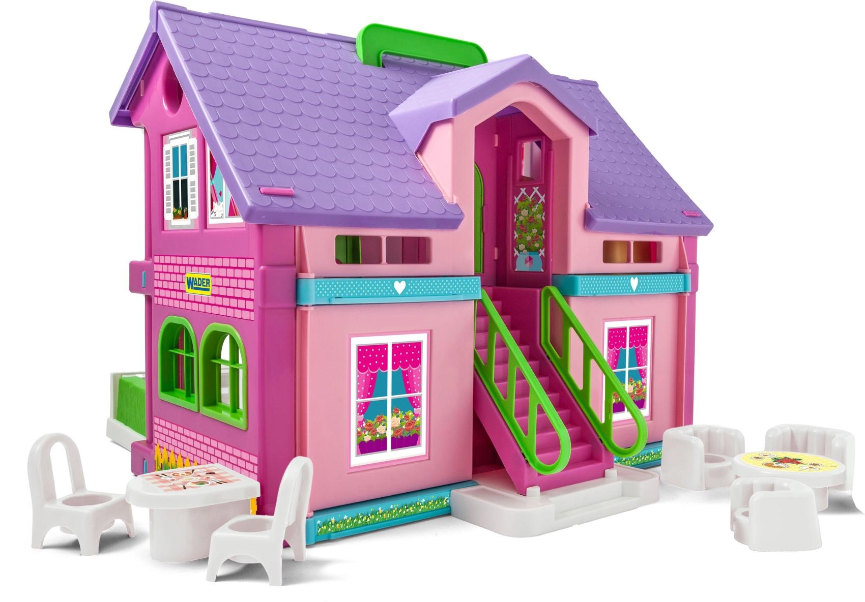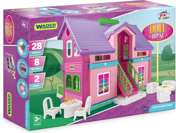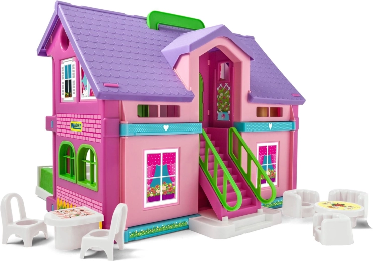 Dieses Puppenhaus von Wader eröffnet Kindern Raum für Fantasie und Rollenspiel. Dank der offenen Bauweise ist das Spielen von jeder Seite bequem und Kinder erreichen mühelos alle Räume.