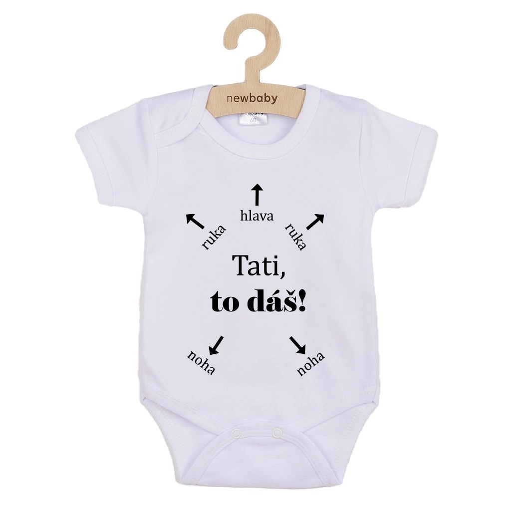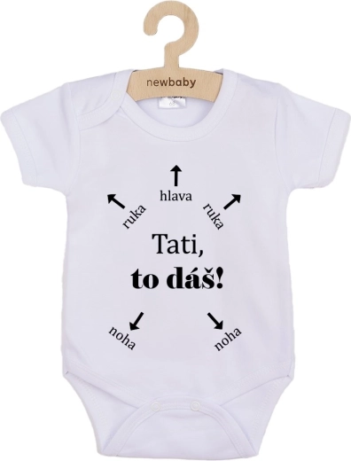 Bequemer Baby-Body mit kurzen Ärmeln und originellem Aufdruck Papa, das schaffst du! der Marke NEW BABY. Hergestellt aus 100% weicher Baumwolle, die sanft, atmungsaktiv und besonders schonend zur empfindlichen Babyhaut ist. Praktischer Druckknopfverschluss an der Schulter und im Schritt erleichtert An- und Ausziehen sowie Wickeln. Die Druckfarben sind zertifiziert und sicher für Babys.