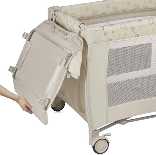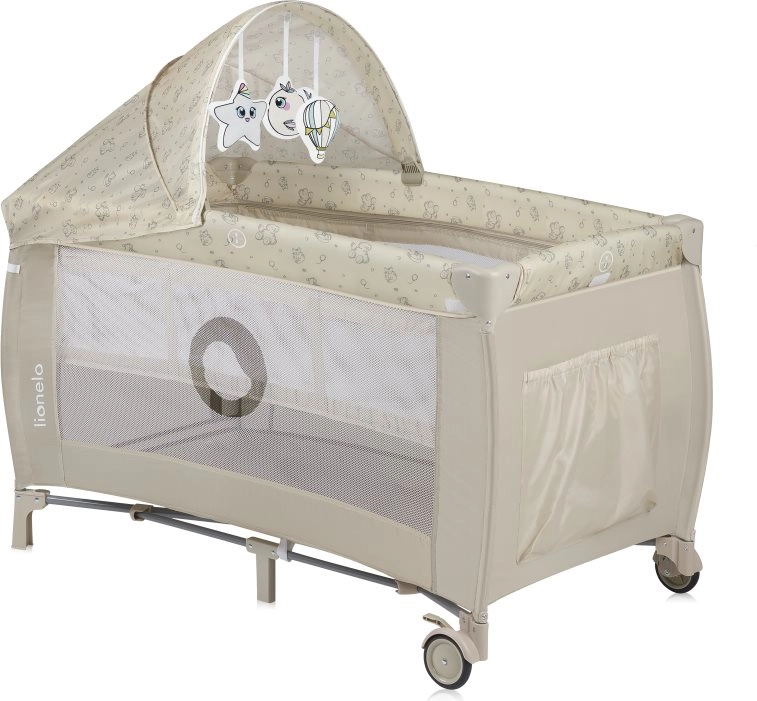 Das Reisebett LIONELO Sven Plus Beige Latte ist eine vielseitige Lösung zum Schlafen, Wickeln und Spielen auf Reisen. Dank der zwei Höhenniveaus der Matratze passt es sich perfekt dem Alter des Kindes an – die höhere Position entlastet Ihren Rücken bei Neugeborenen, die niedrigere ist sicher für ältere Kinder. Atmungsaktive Mesh-Wände sorgen für hervorragende Luftzirkulation und ständige Sicht auf das Baby.