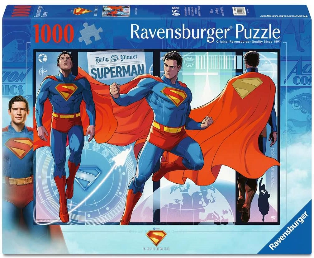 Entdecken Sie die erstklassige Qualität von RAVENSBURGER Puzzles mit dem ikonischen Comic-Motiv SUPERMAN. Dank des exakten Stanzverfahrens und robuster Teile greifen die einzelnen Segmente perfekt ineinander, und das fertige Bild überzeugt mit satten Farben und feinen Details.
