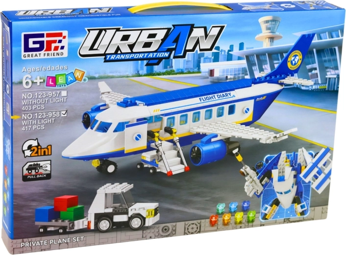 Das Flugzeug verfügt über einen Push-and-Go-Antrieb, sodass es nach dem Anschieben sanft über den Boden rollt. Der Aufbau fördert die Feinmotorik, das logische Denken und das räumliche Vorstellungsvermögen, während hochwertiger Kunststoff Stabilität und Haltbarkeit gewährleistet.