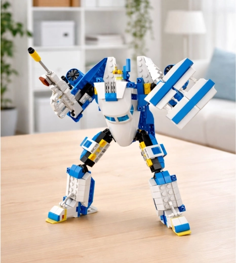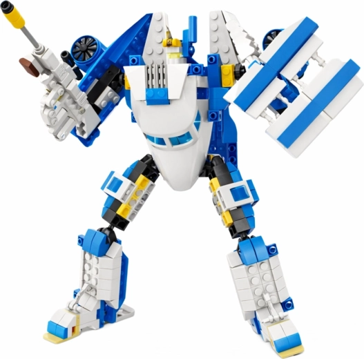 Aus 417 Teilen bauen Sie ein detailreiches Passagierflugzeug mit öffnenden Elementen oder einen actionreichen Roboter mit Gelenken. Doppelter Spielspaß ohne zusätzliche Sets.