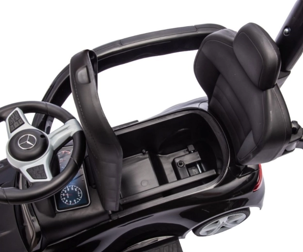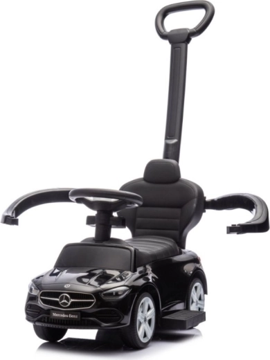 Das stylische Kinderlaufrad MERCEDES C‑Class in elegantem Schwarz bietet realistisches Design, sicheres Fahren und Komfort für kleine Fahrer. Dank der Schiebestange, Seitenschutzbügel, klappbaren Fußstützen und dem Stauraum unter dem Sitz ist es ideal für die ersten Ausflüge und das Spielen zu Hause und fördert zugleich die Entwicklung von Motorik und Koordination.