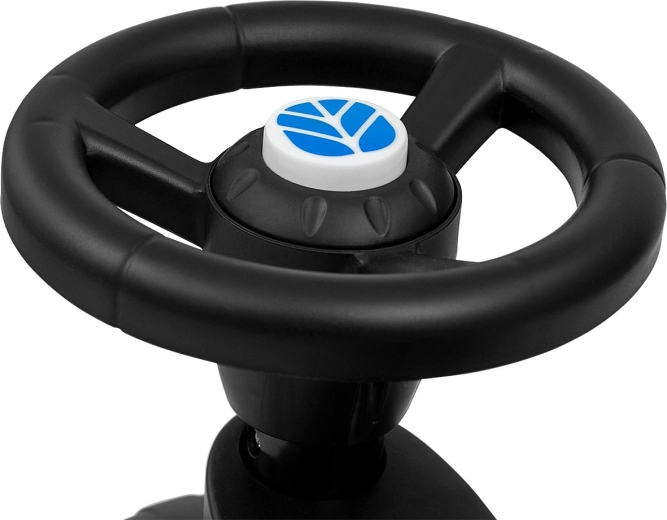Lenkrad mit Tröte und Bedienfeld mit zwei Tasten bieten realistische Geräusche von Hupe und Motorstart sowie die Möglichkeit, die Lichter ein- und auszuschalten – mehr Spaß bei jeder Fahrt.