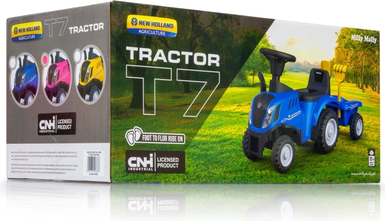 Der rosa Rutscher NEW HOLLAND T7 ist ein hochwertiger Kindertraktor mit Lizenz, der robuste Materialien, durchdachte Sicherheitsfeatures und spielerische Funktionen kombiniert. Dank stabiler vierrädriger Basis, Metallachsen und Kippschutz bewegen sich Kinder drinnen wie draußen sicher. Lenkbare Vorderräder und ein bequemer Sitz mit Rückenlehne ermöglichen einfaches Steuern und komfortables Fahren.