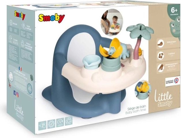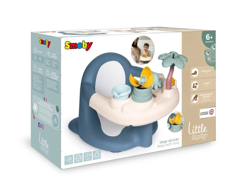 Zum Lieferumfang gehört ein interaktives Spieltablett mit 5 Wasseraktivitäten, die Sinne und Feinmotorik fördern: Wassermühle, Gießbecher, Palmen-Sprühaufsatz, „magische“ Blume und eine spritzende Krake. Vier starke Saugnäpfe halten den Sitz fest am Wannenboden für maximale Stabilität. Hergestellt in Frankreich.