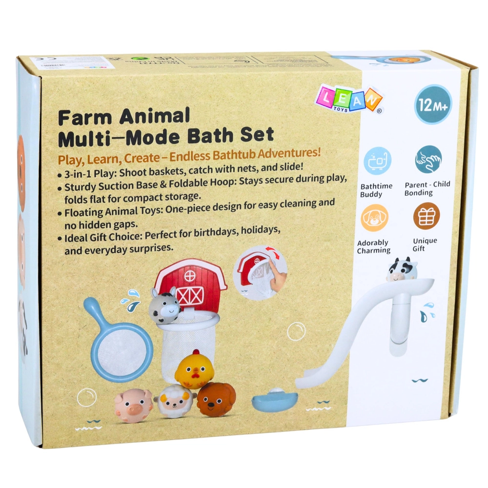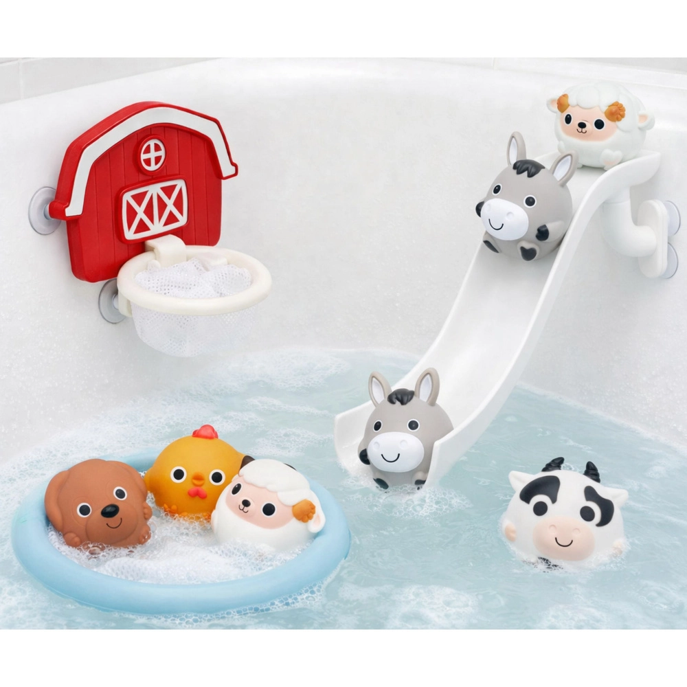 Dieses umfangreiche Badeset mit Bauernhofmotiv unterstützt die sensorische Entwicklung, die Feinmotorik sowie die Hand-Auge-Koordination. Die runde Form der Tierchen erleichtert das Greifen und Kullern – so geht der Spaß auch außerhalb der Wanne weiter. Die Teile sind leicht zu reinigen und enthalten keine versteckten Ritzen.