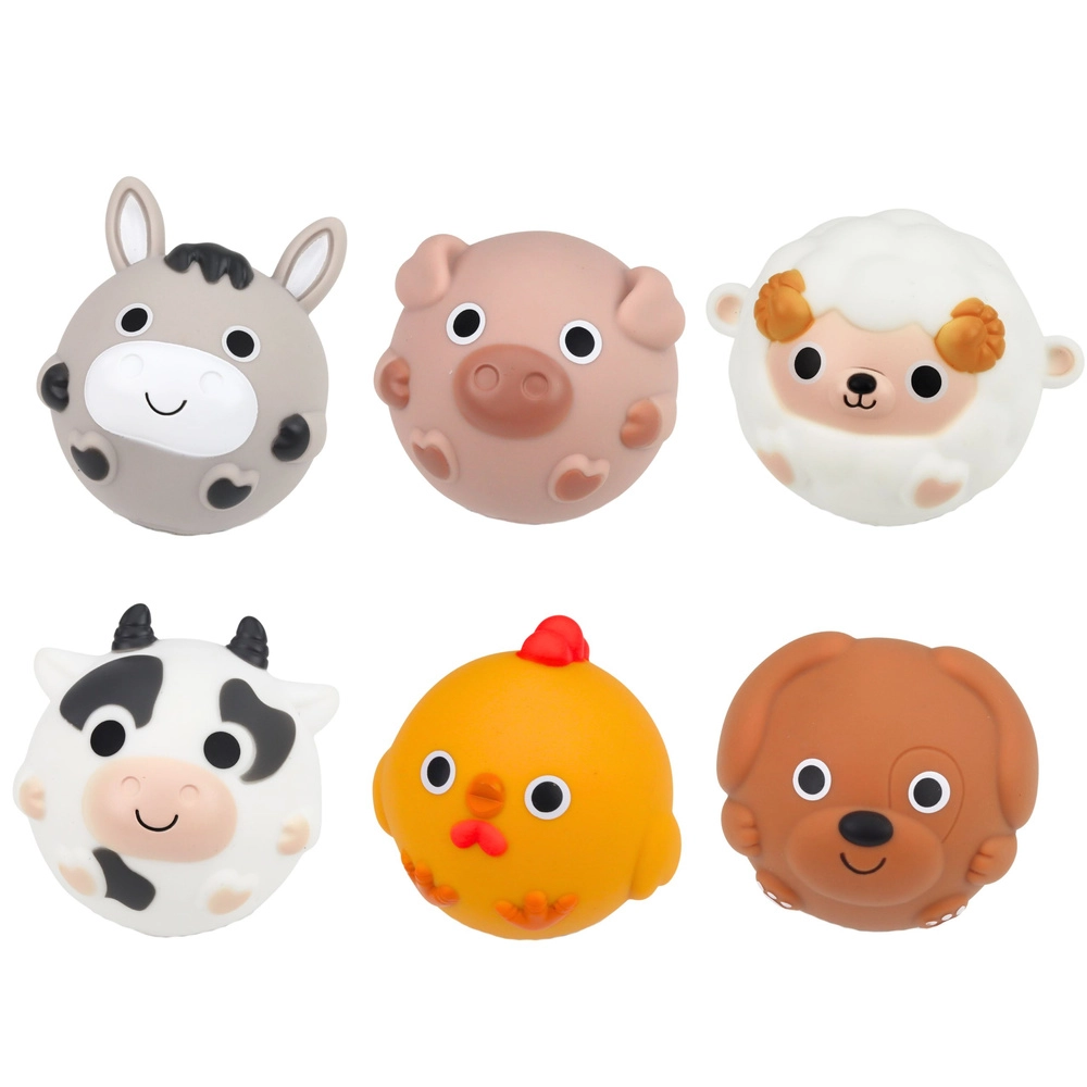 Sechs niedliche Bauernhoftiere sind angenehm weich, lassen sich leicht zusammendrücken, schwimmen auf der Wasseroberfläche und fördern das sinnliche Spiel.