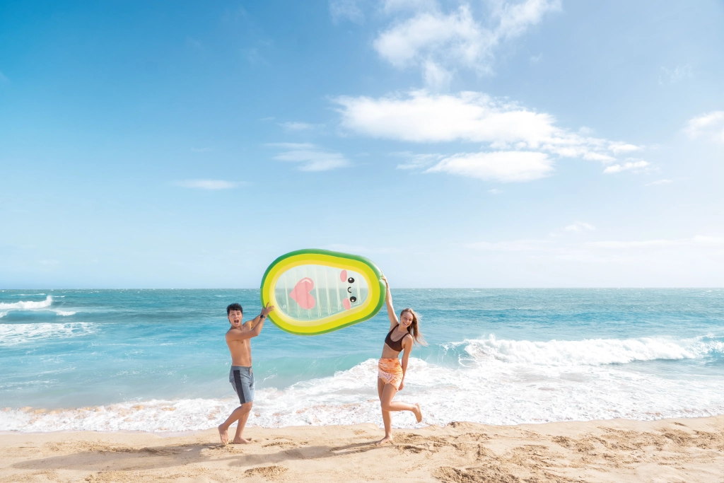 Der transparente Mittelteil mit niedlichem Gesicht und rosa Herz verleiht der Liege einen einzigartigen Look – perfekt für Fotos am Strand und im Pool.