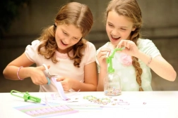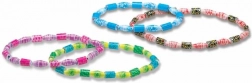 Enthält farbige Papierstreifen und notwendige Materialien zur Herstellung von Perlen und Armbändern.