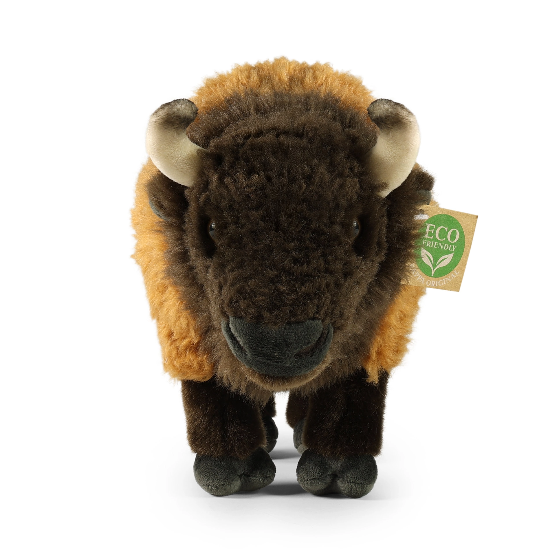 Authentische Fellstruktur, kleine Hörner und sorgfältige Handnähte verleihen dem Bison ein lebendiges Aussehen und einzigartigen Charakter.