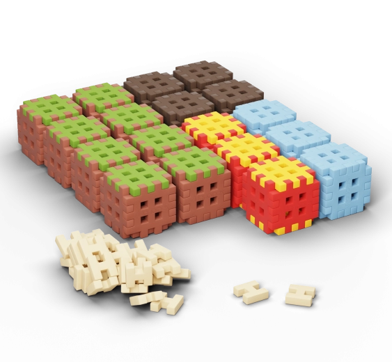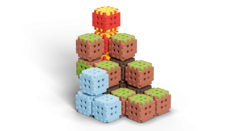 Die Konstruktionen halten stabil und lassen sich dennoch schnell umbauen, je nach aktueller Fantasie. Aus einem Set entstehen ganze „Landschaften“, von den Grundlagen bis zu farbigen Bauwerken – jedes Mal anders. Alle Mini Waffle Sets sind untereinander kompatibel, sodass Ihre Welten stetig wachsen können.