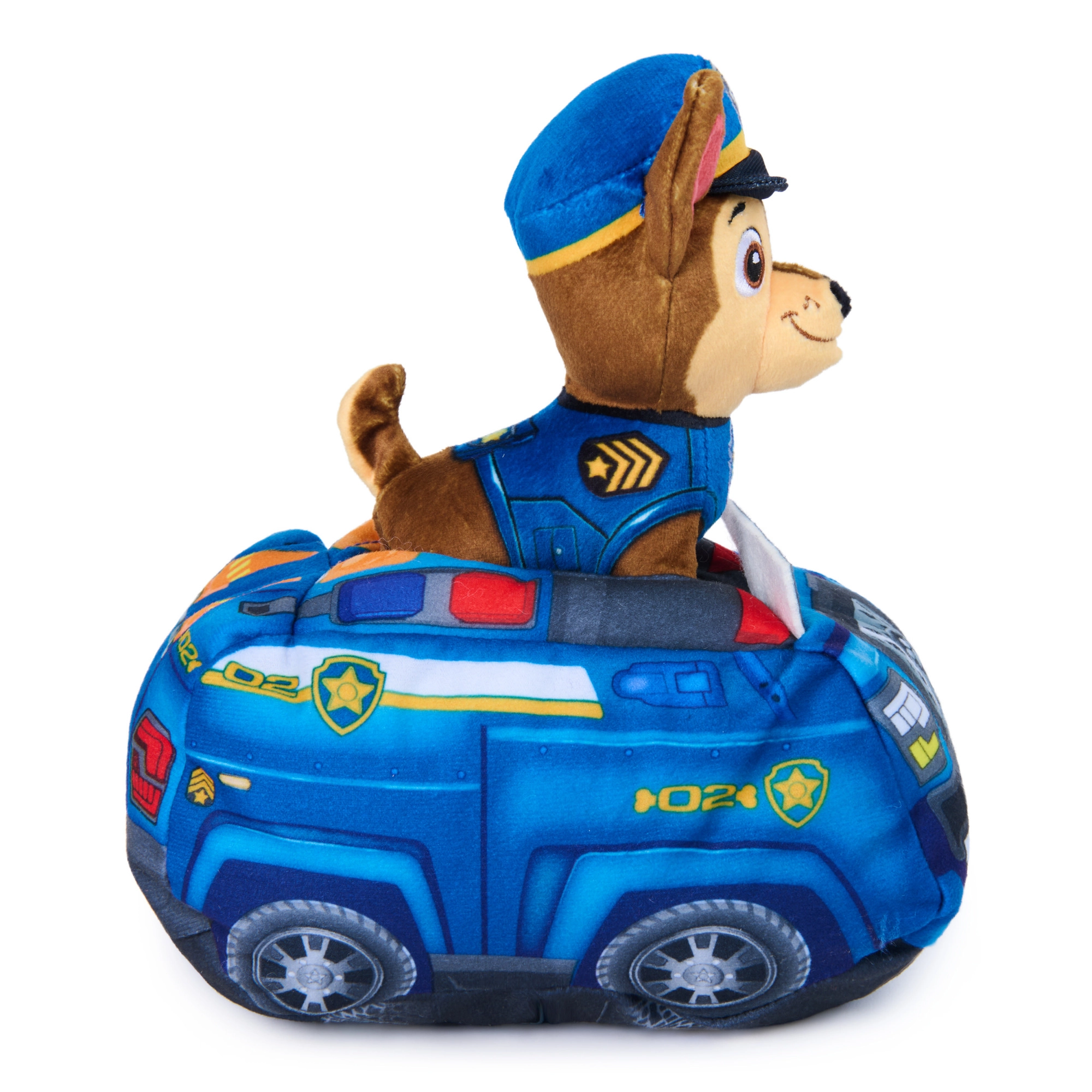 Dieses 2-in-1-Plüschset vereint den beliebten Helden Chase aus PAW Patrol mit einem weichen Polizeifahrzeug. Kinder können den Hund in das Auto setzen und herausnehmen, ihre Fantasie anregen und Rettungsmissionen aus der Serie nachspielen.