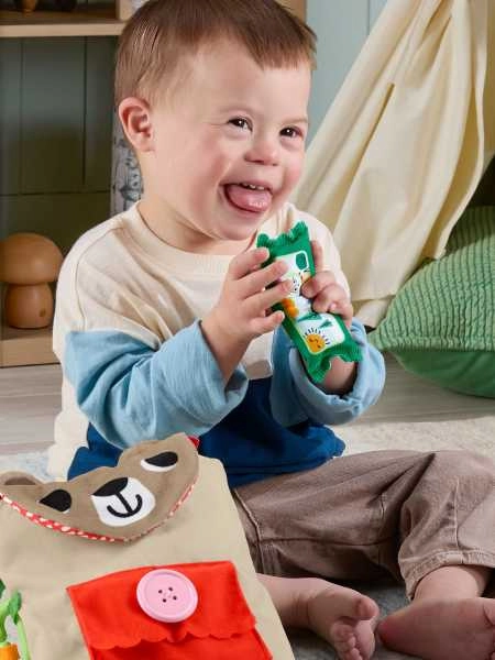 Drücke den Clip, schließe die Tasche, biege den „knusprigen“ Snack und klebe die Stoffpflaster mit Klettverschluss auf – jede Aktivität stärkt Koordination und Geschicklichkeit.