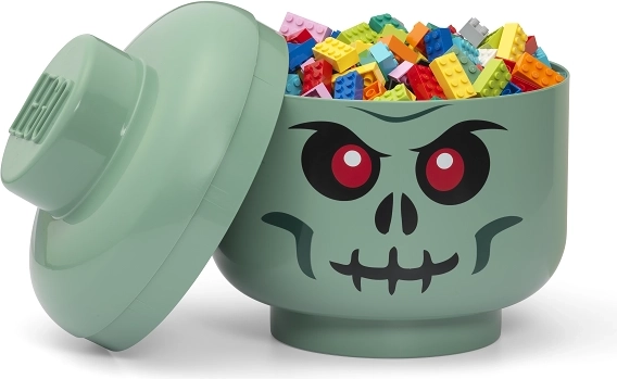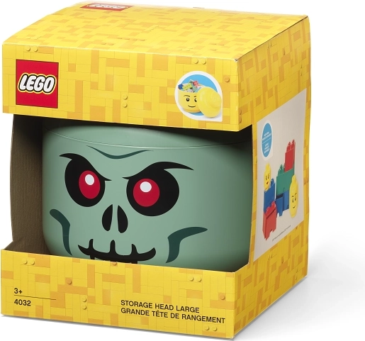 Der große LEGO Aufbewahrungskopf in Grün mit ausdrucksstarkem „spooky“-Gesicht ist ein praktischer und zugleich dekorativer Helfer für jedes Kinderzimmer. Der abnehmbare Deckel ermöglicht einen einfachen Zugriff auf den Inhalt und der robuste Kunststoff lässt sich leicht reinigen.