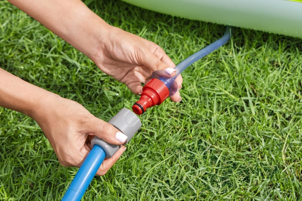 Der integrierte Sprayer im vulkanischen Bogen lässt sich leicht an den Gartenschlauch anschließen und erzeugt angenehme Wassereffekte, die kühlen und unterhalten.