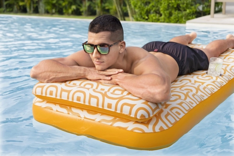 Für zusätzliche Ruhe und Stabilität ist die Matratze mit 2 separaten Luftkammern ausgestattet. In der Nähe des Kopfkissens befindet sich ein Getränkehalter, sodass Sie Ihre Erfrischung direkt auf dem Wasser genießen können. Im Lieferumfang ist außerdem ein Reparaturflicken enthalten, um kleine Beschädigungen schnell zu beheben.