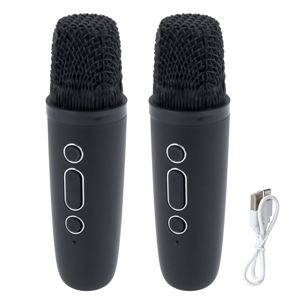 Im Lieferumfang sind zwei kompakte, kabellose Mikrofone enthalten – ideal für Gesang im Duett oder spannende Karaoke-Battles. Einfache Bedienung und Aufladen via USB.