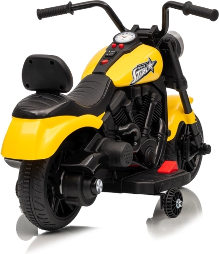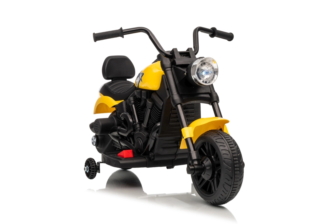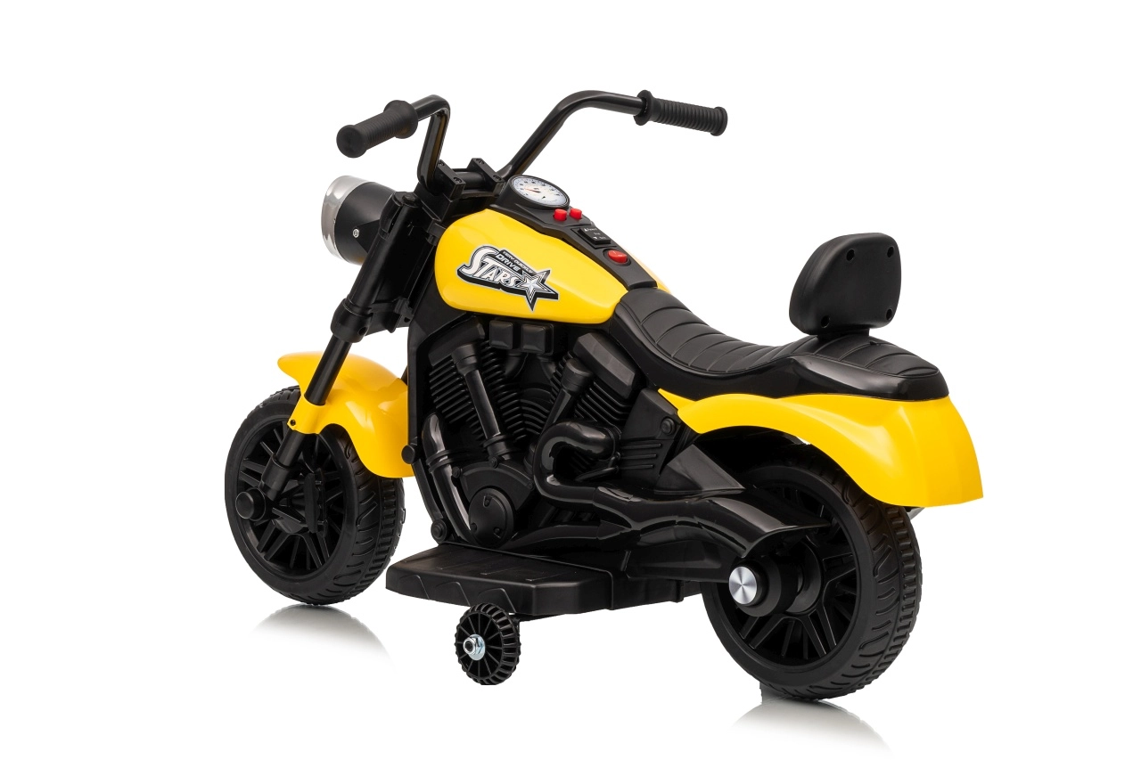 Schenken Sie Kindern ihre ersten Fahrerlebnisse mit dem elektrischen Motorrad STAR. Die robuste Kunststoffkonstruktion, breite Räder und seitliche Stützräder sorgen für hohe Stabilität – ideal auch für Fahranfänger. Der Sanftanlauf schützt vor Ruckeln und erhöht die Sicherheit bei jedem Start.