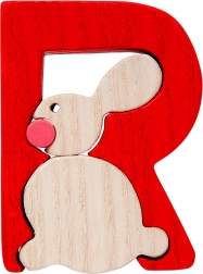 Der Buchstabe R mit Häschen motiviert Kinder, Buchstaben zu erkennen und Wörter zu bilden. Er fördert logisches Denken und die Feinmotorik durch intuitives Einsetzen und Greifen.