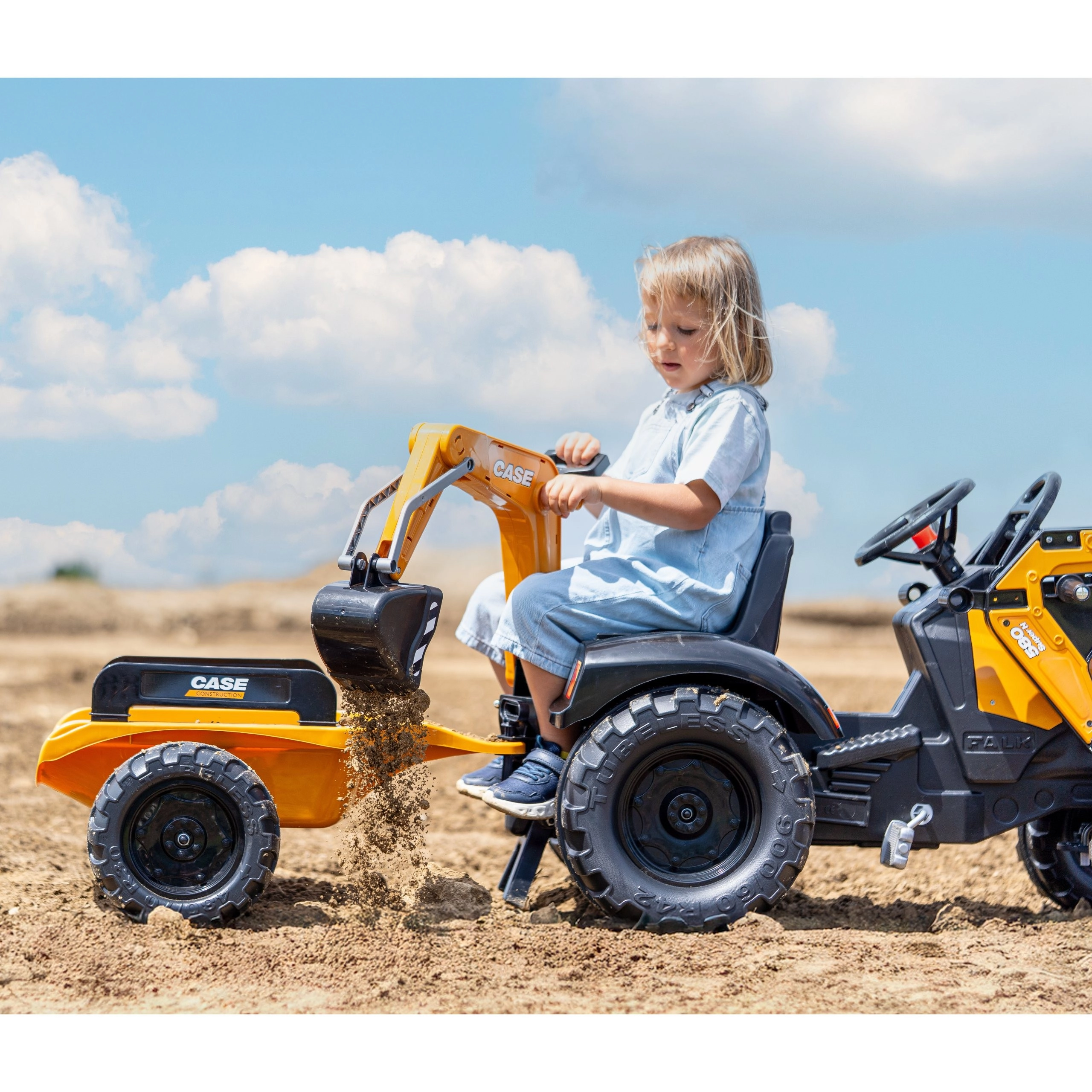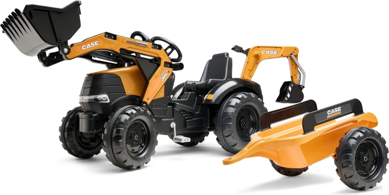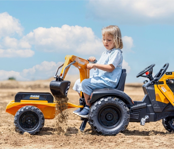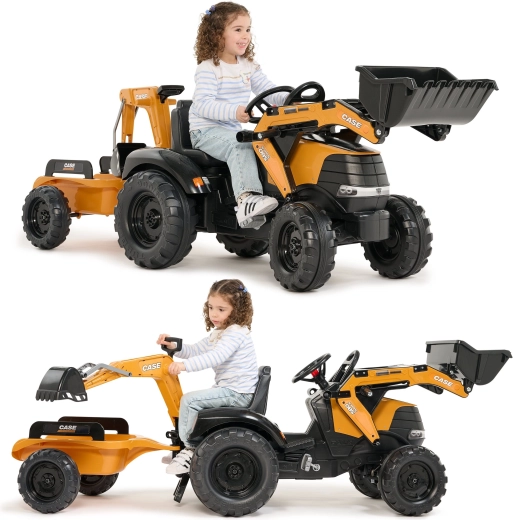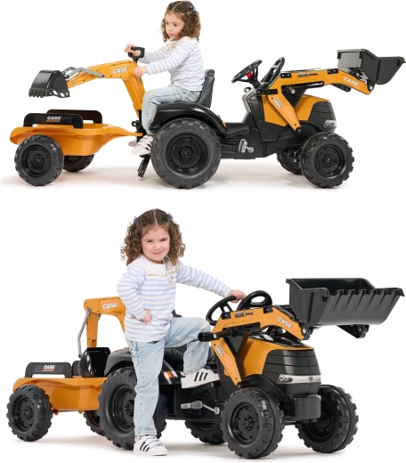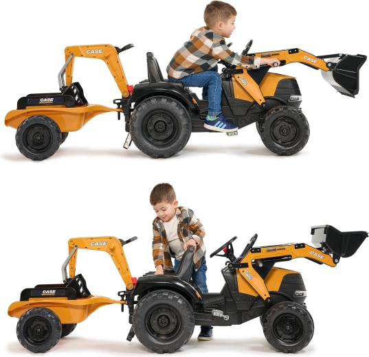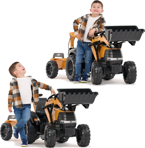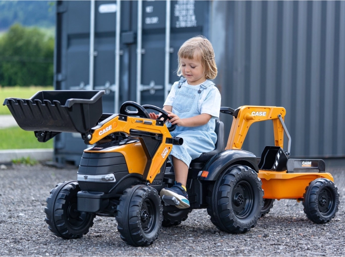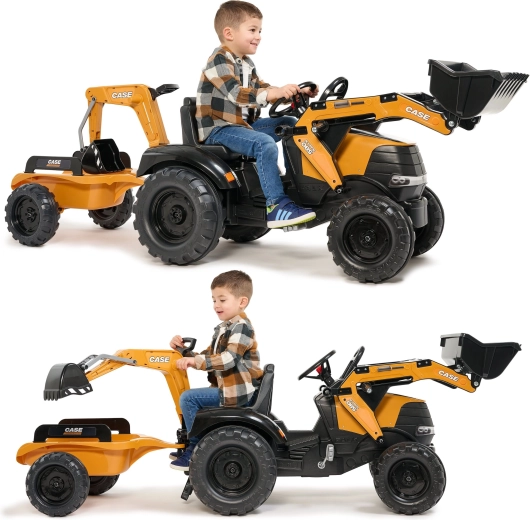 Genießen Sie stundenlangen Outdoor-Spaß mit dem robusten Trettraktor CASE, der realistische Funktionen von Bautechnik mit sicherem Betrieb für Kinder kombiniert. Sowohl der Frontlader als auch der Heckbagger sind gelenkig und nehmen tatsächlich Sand, Erde oder Laub auf, während der 360°-Drehsitz eine bequeme Bedienung von beiden Seiten ermöglicht.