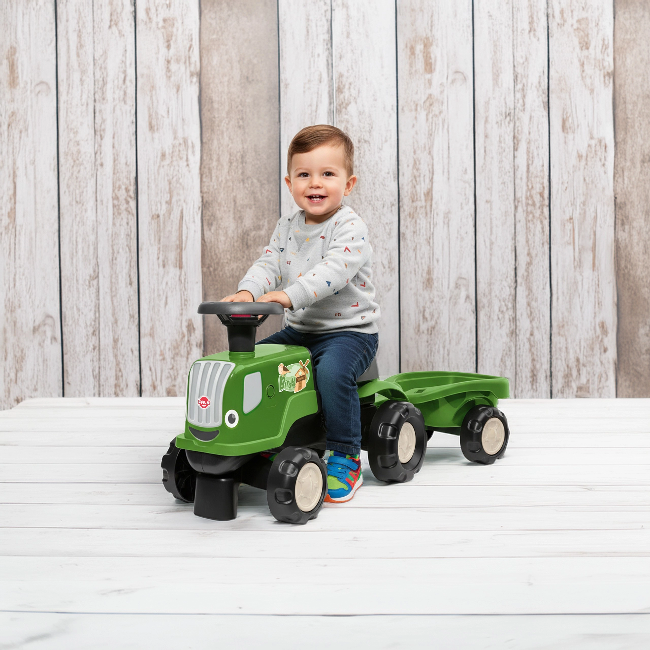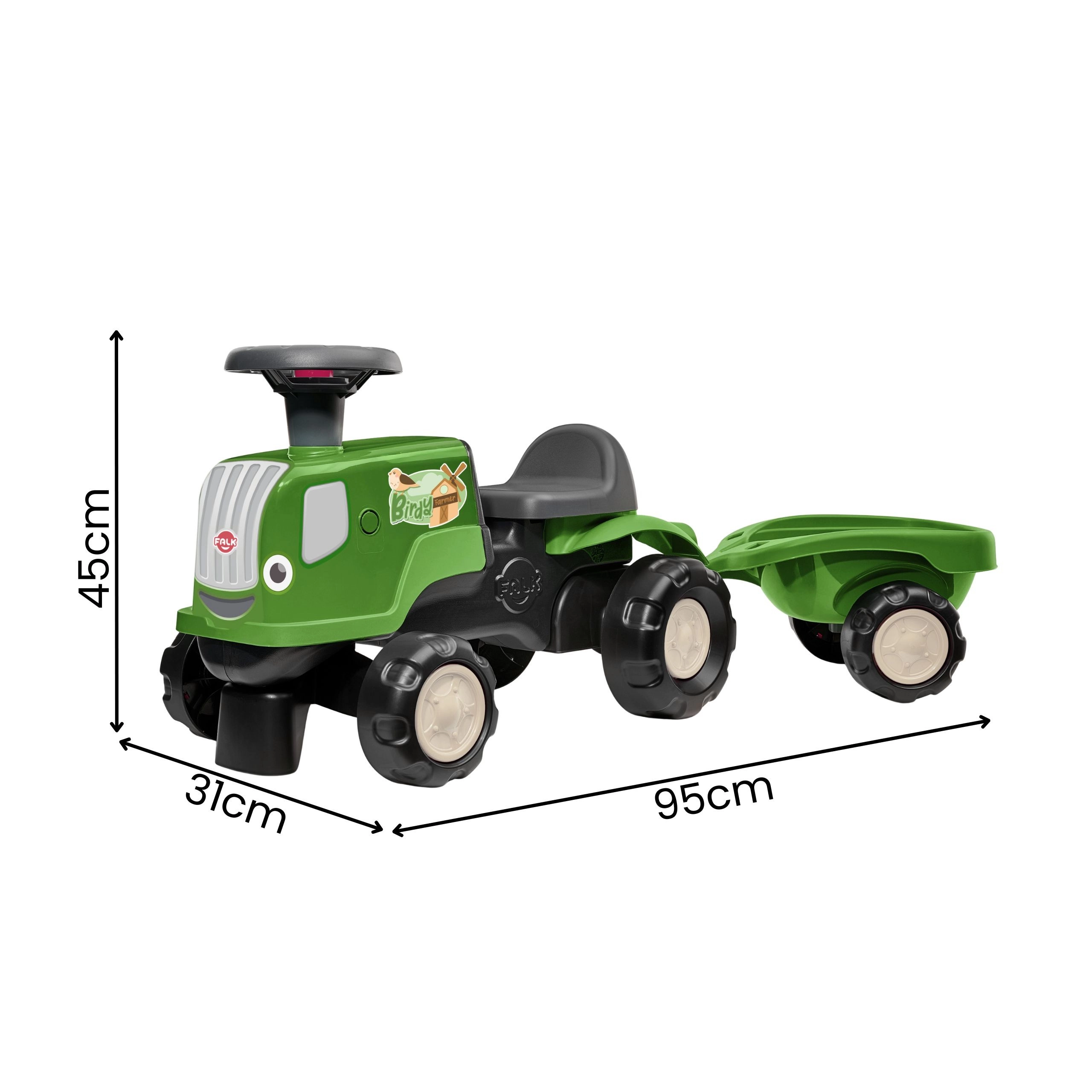 Starten Sie Bauernhof-Abenteuer mit dem FALK BIRDY FARM Laufrad. Die robuste, wetterfeste Kunststoffkonstruktion und vier große Räder sorgen für Sicherheit und Stabilität auf ebenen Oberflächen. Dank drehbarem Lenkrad und geringem Gewicht meistern Kinder das Manövrieren und Abstoßen mit eigener Kraft leicht.