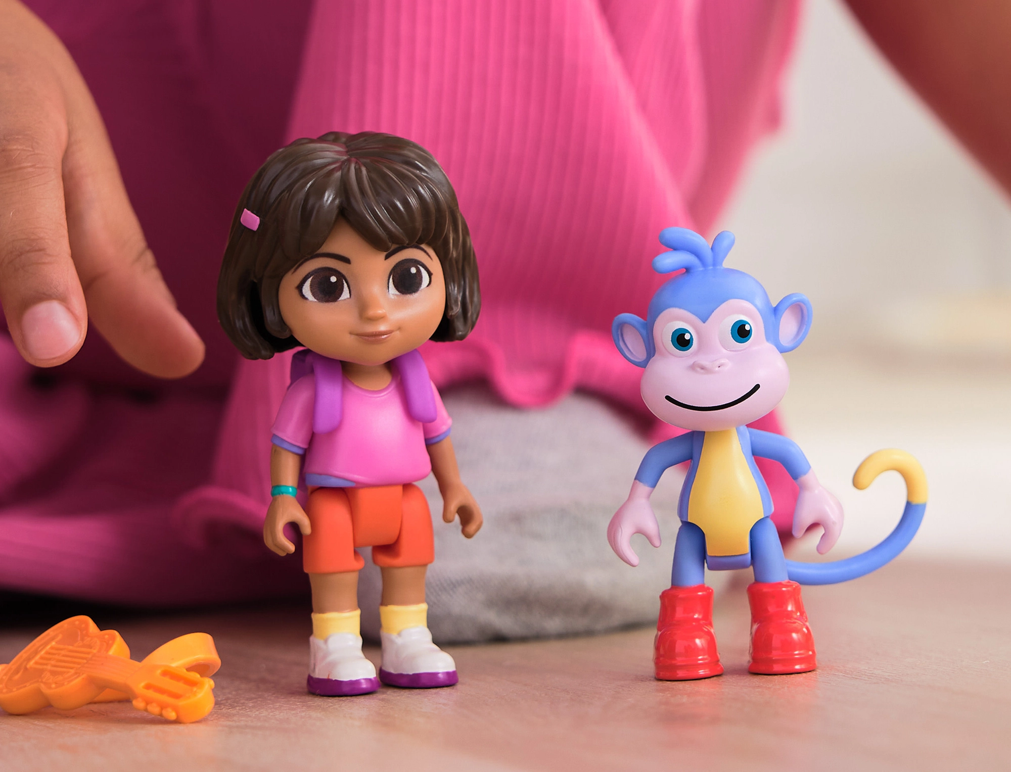 Enthalten sind bewegliche Figuren von Dora und dem Äffchen Boots sowie der ikonische Rucksack. Ideal zum Nachspielen von Serienszenen und eigenen Abenteuern.