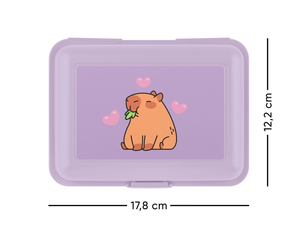 Suchen Sie eine zuverlässige Brotdose für Kinder und Erwachsene? Diese lilafarbene Baagl-Brotdose mit Kapybara-Motiv bietet praktische Aufteilung und einfache Handhabung dank Ein-Clip-Verschluss. Ideal für Sandwiches, Obst und kleine Snacks.