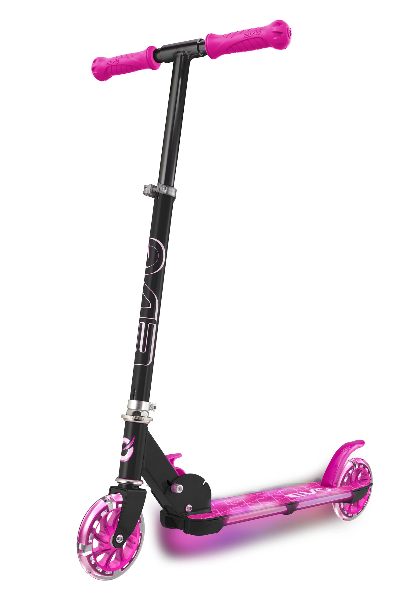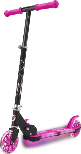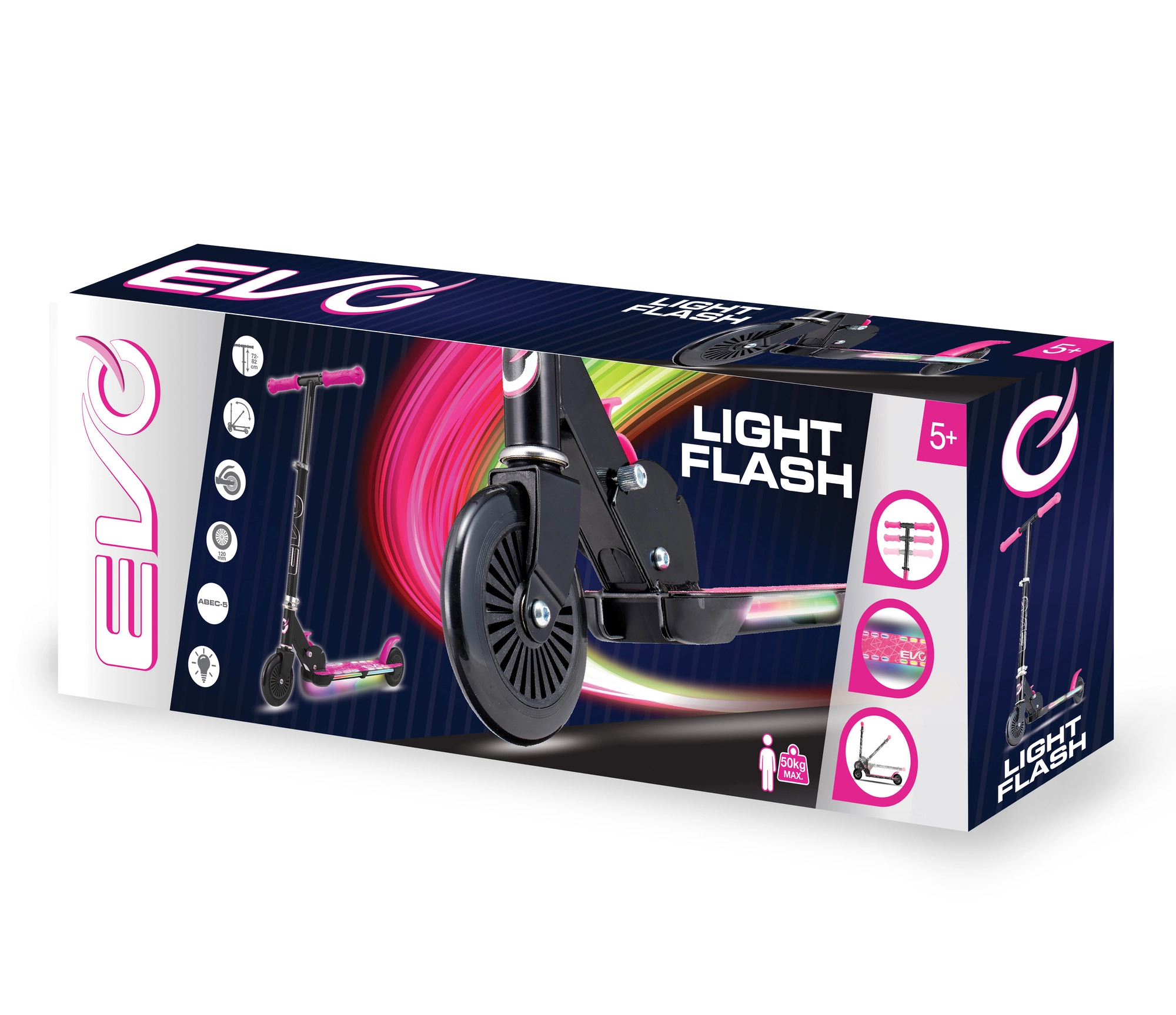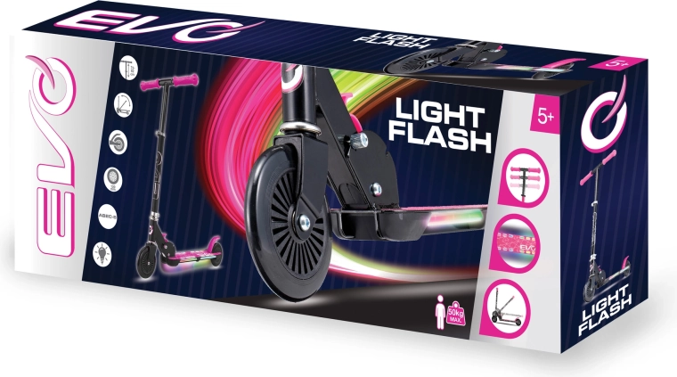 Der EVO Light Flash ist die perfekte Wahl für aktive Kinder. Dank des leichten, klappbaren Rahmens lässt er sich einfach tragen und verstauen, die verstellbare Lenkerhöhe (ca. 67–77 cm) wächst mit dem Kind mit und das LED-Trittbrett macht jede Fahrt zu einem unterhaltsamen Erlebnis. Gummiräder mit ABEC-5-Lagern sind auf eine komfortable und leise Freizeitfahrt auf ebenen Flächen ausgelegt.