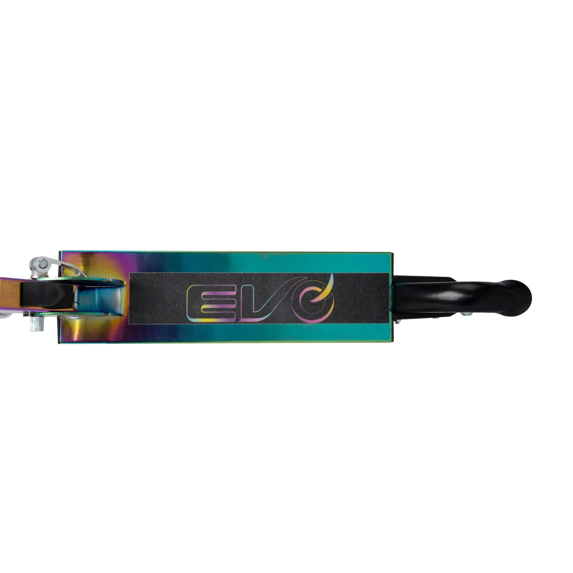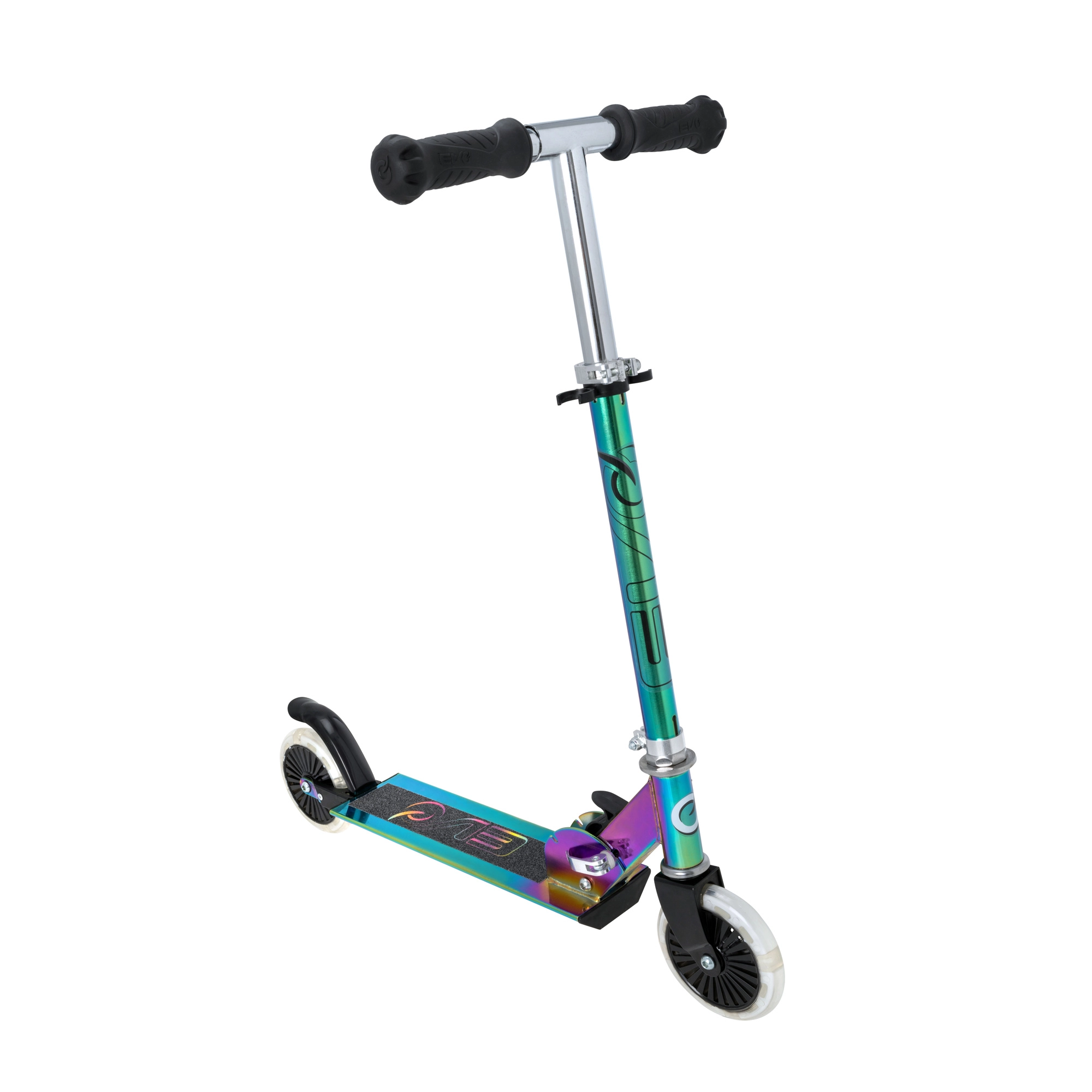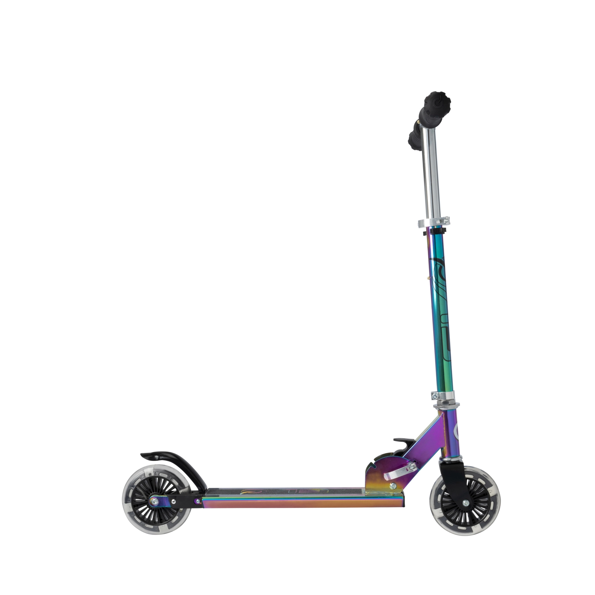 Der EVO Light Up Neochrome Roller ist eine tolle Wahl für kleine Fahrer, die auffallen möchten. Dank des höhenverstellbaren Lenkers (ca. 67–77 cm) wächst er mit dem Kind mit, der Klappmechanismus erleichtert Transport und Aufbewahrung und die robuste Metallkonstruktion mit rutschfester Trittfläche sorgt für Sicherheit beim Fahren.
