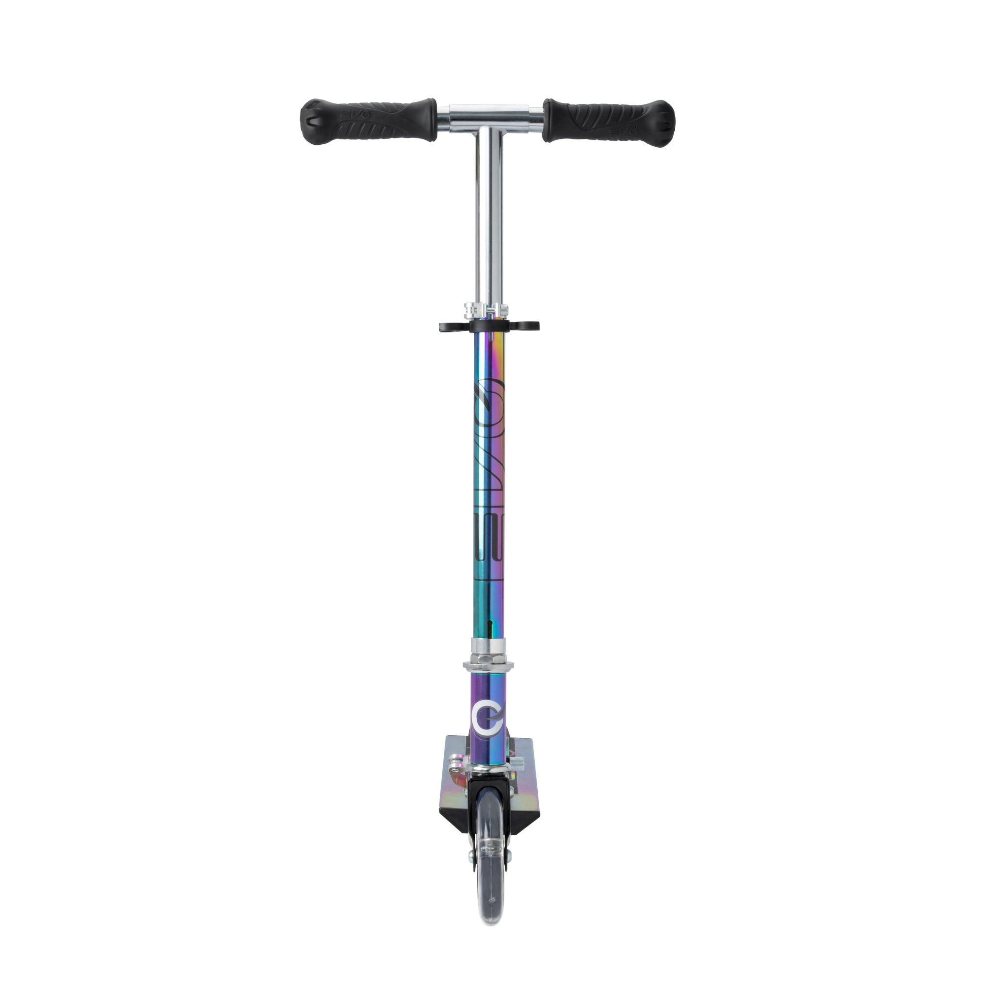 Leuchtende Räder mit ABEC-5-Lagern machen jede Ausfahrt zum Vergnügen und gewährleisten einen sanften und leisen Lauf auf ebenen Untergründen. Das hintere Schutzblech fungiert als Bremse für ein schnelles und intuitives Anhalten. Das moderne Neochrome-Design fällt sofort ins Auge und fördert Freude an Bewegung sowie die Entwicklung von Gleichgewicht und Koordination.