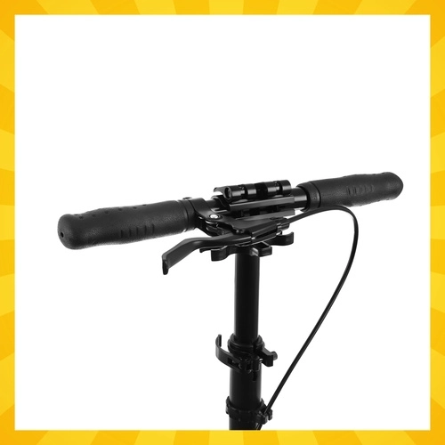 Für sicheres Anhalten sorgt eine manuelle Scheibenbremse, ergänzt durch eine Fußbremse im hinteren Schutzblech. Die 4-stufige Höhenverstellung des Lenkers gewährleistet eine bequeme Haltung für Kinder und Erwachsene. Die Aluminiumkonstruktion ist leicht und robust, schnelles Zusammenklappen und ein praktischer Ständer erleichtern das Abstellen und den Transport in öffentlichen Verkehrsmitteln.