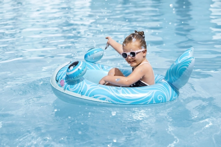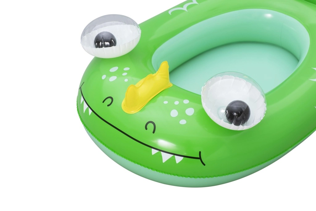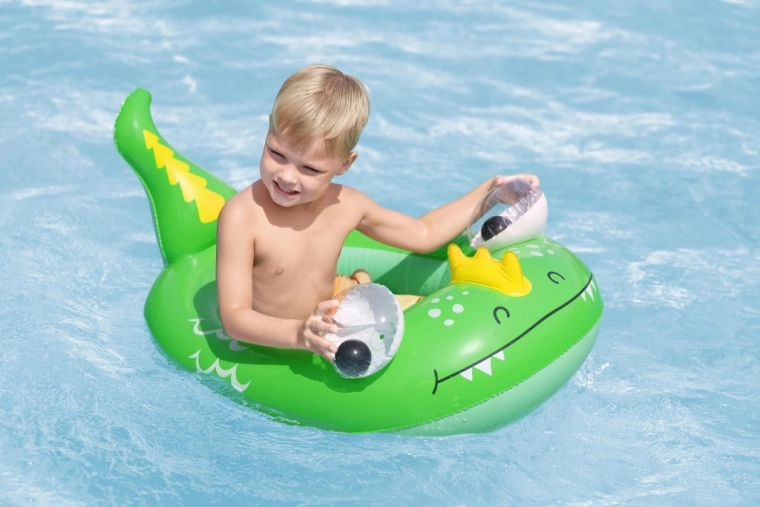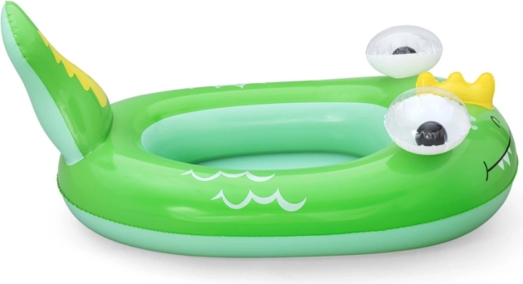 Jedes Motiv bietet eigene verspielte Details: ein blauer Wal mit weißen Spiralen und 3D‑Augen, ein grüner Drache mit ausdrucksstarken Augen und gelben Akzenten sowie ein gelb‑türkisfarbenes U‑Boot mit weißem Propeller für noch mehr Spaß. Sicherheitsventile ermöglichen schnelles Auf- und Ablassen der Luft – ideal für Familien unterwegs und fürs Wochenendbaden.