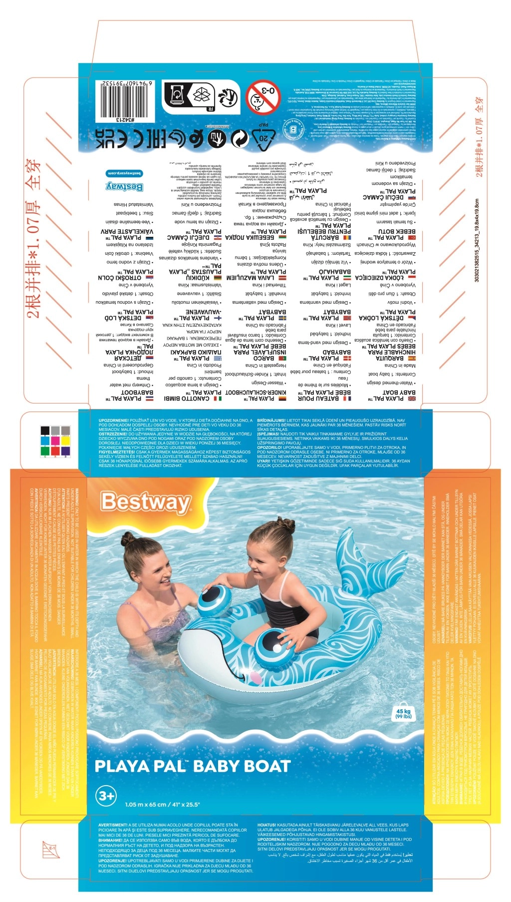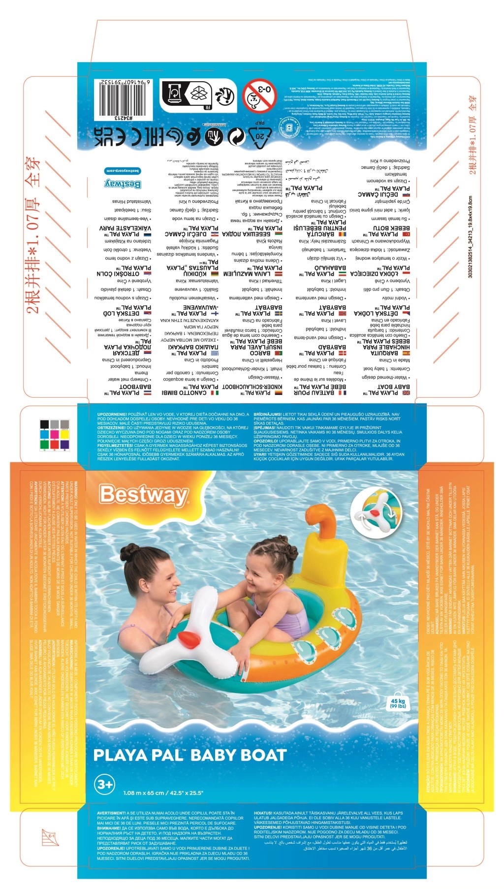 Geeignet für Pools, Teiche und ruhige Strände. Empfohlen für Kinder ab 3 Jahren, mit einer Tragfähigkeit bis 45 kg. Eltern schätzen den stabilen Sitz, die glatten Kanten und den bequemen Innenraum, der hilft, das Kind während des Spiels sicher zu positionieren.