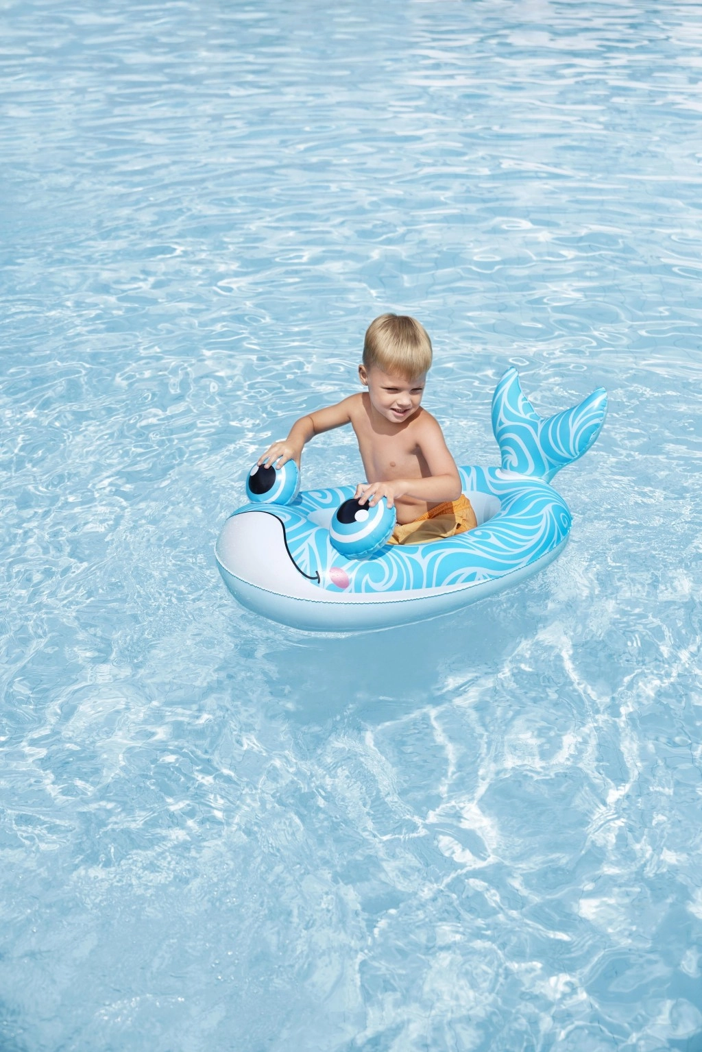 Das U‑Boot‑Modell hat zwei unabhängige Luftkammern für besseren Auftrieb und eine ruhigere Fahrt auf dem Wasser. Verspielte Details mit weißem Propeller fördern interaktives Spielen.