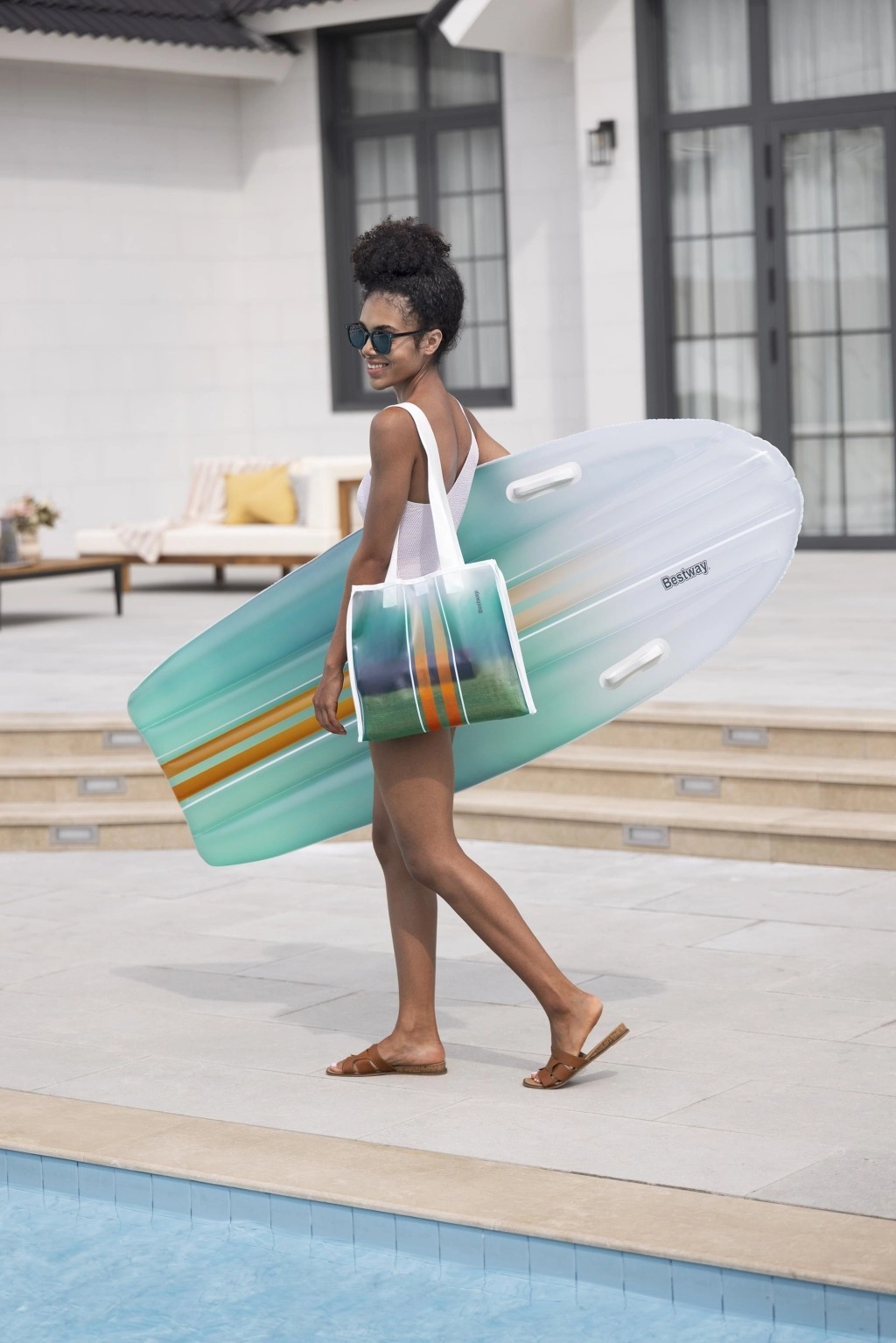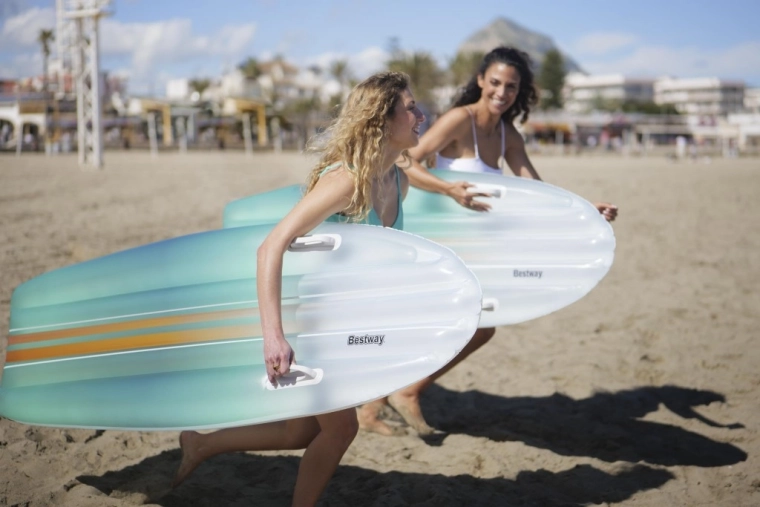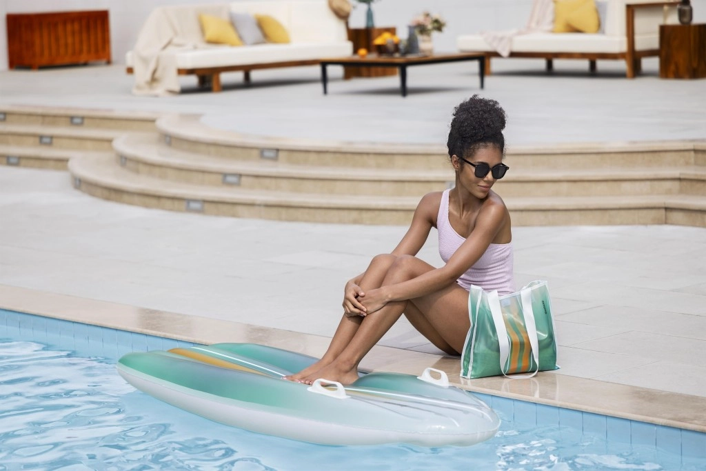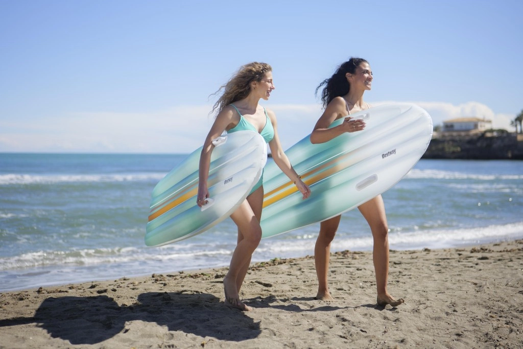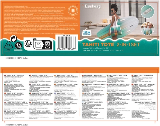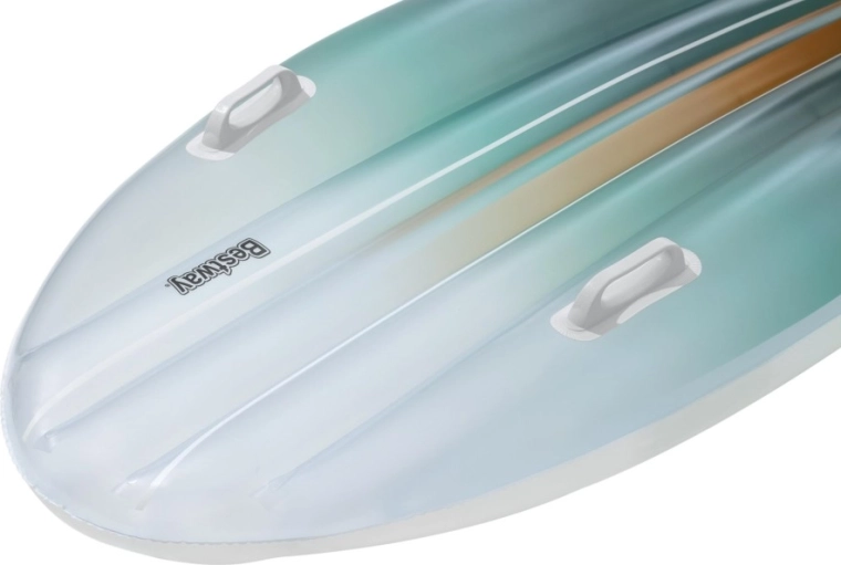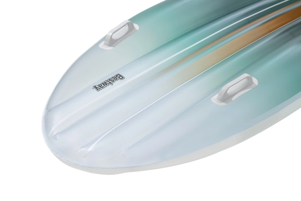 Das BESTWAY TAHITI Set vereint Praktikabilität und Stil für entspannte Stunden am Wasser. Die Liege mit hydrodynamischer Form und zwei integrierten Griffen sorgt für Sicherheit beim Aufsteigen und während der Ruhepause. Der einheitliche cyanfarbene Farbverlauf-Print auf Liege und Tasche wirkt frisch und sommerlich – ein Blickfang am Pool und Strand.