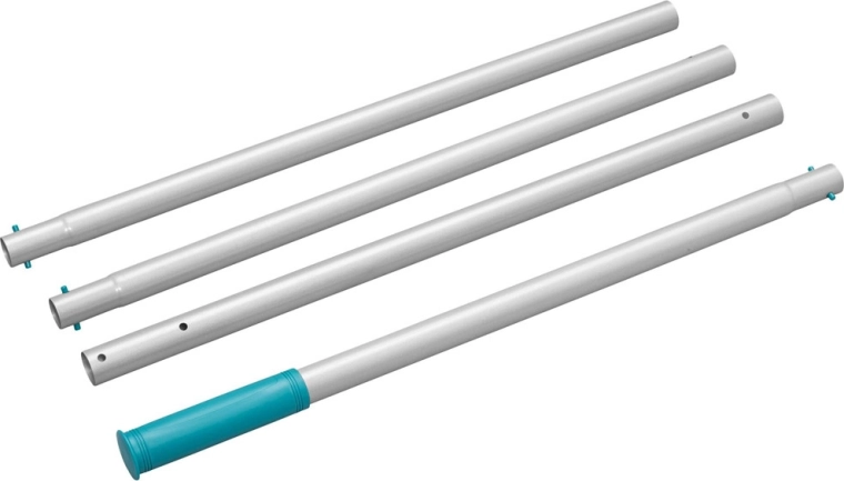 Leichte, steckbare Stange mit Schnellverschluss und zwei Aufsätzen für Boden, Wände, Ecken und Stufen. Einfache Manövrierbarkeit und effektive Reinigung des gesamten Pools.