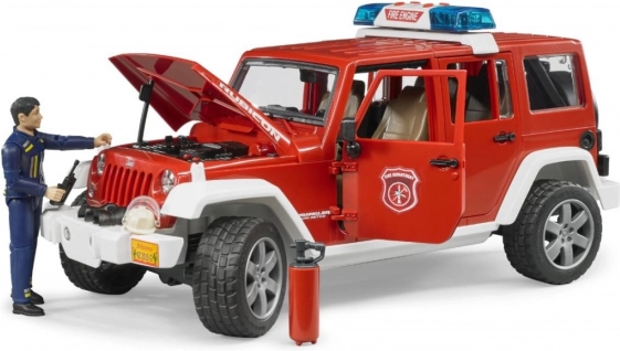 Der Feuerwehrauto Jeep Wrangler von Bruder ist ein detailliert gestaltetes Modell, das jede Kinderfeuerwehr bereichert. Dieser Jeep hat zu öffnende Türen, Motorhaube und Heckfenster, was seine Interaktivität erhöht. Das Modell ist ebenfalls mit einem abnehmbaren Dach und einer Anhängerkupplung ausgestattet. Dank der Möglichkeit der Steuerung durch das verlängerte Lenkrad macht das Spielen noch mehr Spaß.