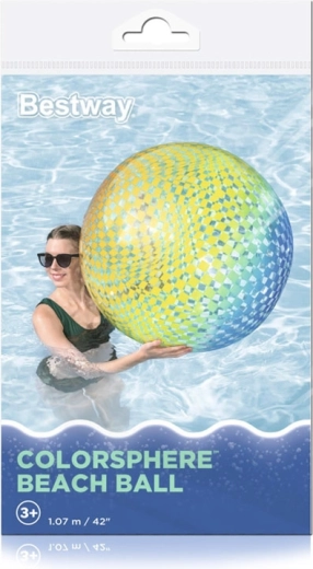 Der große aufblasbare Strandball BESTWAY ColorSphere mit einem Durchmesser von 107 cm bringt farbenfroßen Spaß in Pool und an den Strand. Dank leichtem Vinyl, einfacher Aufblasbarkeit und robuster Konstruktion ist er ideal für Kinder ab 3 Jahren und Erwachsene. Das auffällige Karomuster sorgt für gute Sichtbarkeit und lädt noch mehr zu gemeinsamen Spielen im Wasser und an Land ein.